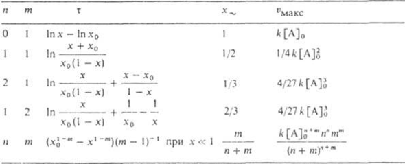 Во мн. случаях скорость самоускоряющихся р-ций формально описывается ур-ниями, сходными с теми, к-рые приведены в таблице для А.