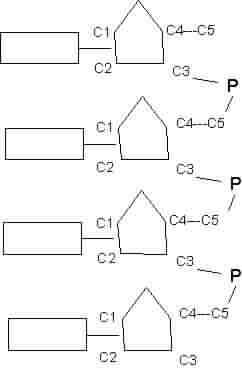 Мономеры соединяются между собой через пентозу в С3 положении и остаток фосфорной кислоты с помощьюфосфорной диэфирной связи.