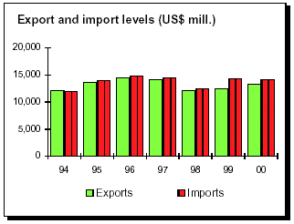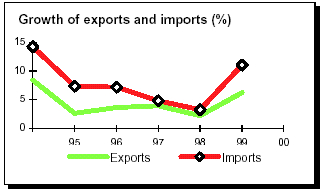 На основании данных таблиц(см.интернет источникки, в конце) можно констатировать что на протяжении последних трех лет (98-2000) в Новой Зеландии наблюдается постепенное увеличение объемов экспорта и импорта товаров ( прирост около 6% ежегодно) с небольшим преобладанием импорта.