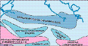 Вдоль границы континентов формировались сухопутные барьеры, очертания океана в большой мере приблизились к современным контурам Средиземного моря и Индийского океана. И все же мелкими шельфовыми морями (в том числе бывшими окраинными) оставались покрыты значительные участки теперешней суши. Еще 12 миллионов лет назад Большекавказское окраинное море частично сохранялось, и ширина его вчетверо превосходила современную ширину южного склона гор. Глубина этого моря в осевой части достигала 500 м, а наиболее мелкая его часть (шельф с глубиной, не превышавшей 200 м) располагалась в районе северного склона Большого Кавказа. Северная граница моря простиралась почти до той полосы озер, которая тянется теперь между Азовским и Каспийским морями, образуя так называемую Кума-Манычскую впадину.