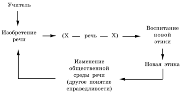 Как видим, глава Х полностью рассматривает схему общественной роли речи, учитывает все компоненты общественной организации и семантизации речи.