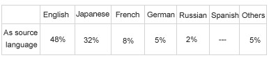 Japanese language translation took the second position which reflected the importance of the role of Japan in technology and foreign trade. In Japanese language translation, of all fields , technology occupied two-thirds of translation volume at the end of the 1990s: