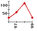 | Линейная диаграмма наиболее часто используется, когда хотят показать изменение какой-либо величины, например, с течением времени. При ее построении отмечаются точки, расстояние которых от горизонтальной оси соответствует (в заданном масштабе) значениям величины, а затем эти точки соединяются отрезками. На горизонтальной оси указывают, чему соответствует каждое значение. | |