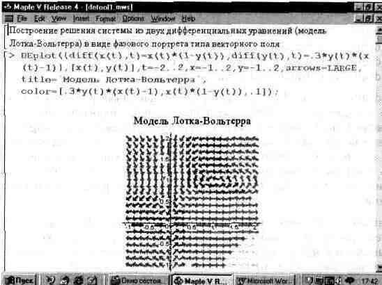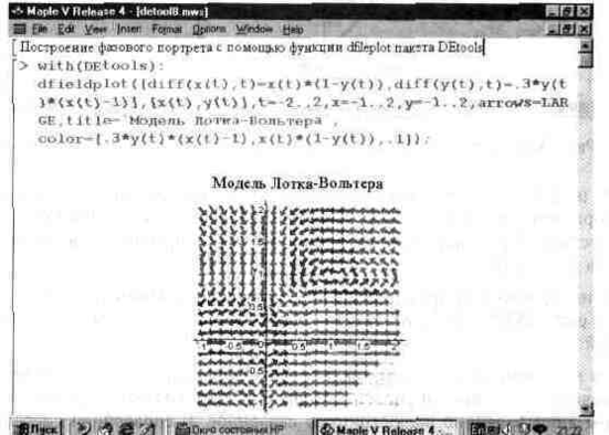 Рис. 13.50. Решение системы дифференциальных уравнении Лотка-Вольтерра с выводом в виде графика векторного поля.