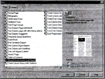 Процесс создания новых страниц в Редакторе весьма прост: более того, Редактор предоставляет в ваше распоряжение ряд шаблонов и мастеров, при помощи которых вы можете создавать страницы с самыми разнообразными свойствами. Чаще всего вы будете создавать страницы, чтобы присоединить их к текущему открытому сайту, но это не единственный возможный случай; можно создать новую страницу, сохранить ее независимо и добавить к любому сайту позднее (читайте об этом далее в этой главе в разделе "Сохранение страниц").