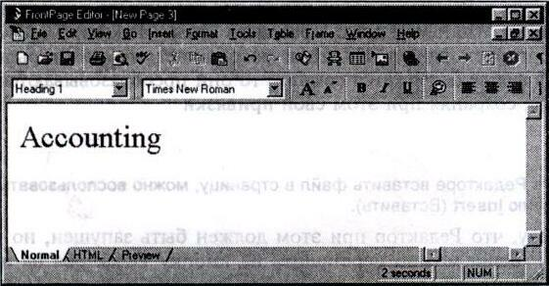 Одной из самых сильных сторон Frontpage является его способность органично усваивать материал из файлов Microsoft Office. Такая дружба Front-page и Microsoft Office экономит массу времени. Например, если информация, которую вы хотели бы поместить на страницу сайта Frontpage, находится в файлах Word или Excel, то вам не придется вводить ее в Редакторе Frontpage заново.