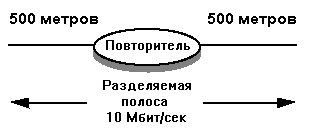 В начале 80-х годов сети Ethernet организовывались на базе шинной топологии с использованием сегментов на основе коаксиального кабеля длиной до 500 метров. Увеличение размеров сетей поставило задачу преодоления 500-метрового барьера. Для решения этой задачи использовались повторители (repeater):