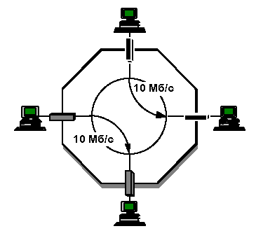 Поддерживая на каждый порт по крайней мере то число адресов, которые могут присутствовать в сегменте, коммутатор обеспечивает для каждого порта выделенную полосу 10 Mbps. Каждый порт коммутатора связан с уникальным адресом подключенного к данному порту устройства Ethernet.