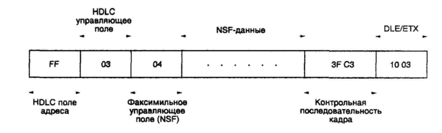 Далее, локальный модем получает HDLC-кадр от удаленного факса и посылает данные, показанные на рис. 4.4, к DTE. Первый байт этого кадра представляет адресное HDLC-поле и при связи по коммутируемой телефонной сети всегда имеет значение FFh.