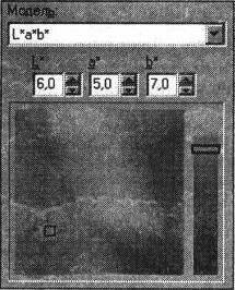 Рис. 4-10. Цветовая модель L*a*b представляется в виде полоски, определяющей светлоту, и квадрата, определяющего хроматические параметры