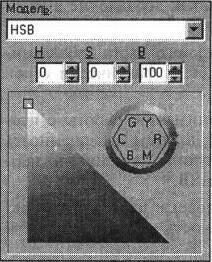 Эта модель уже гораздо ближе к традиционному пониманию работы с цветом. Можно определять сначала цветовой тон (Hue), а затем насыщенность (Saturation) и яркость (Brightness). Такая модель получила название по первым буквам приведенных выше английских слов — HSB.