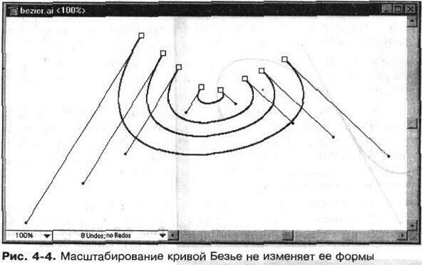 <ривая Безье, используя математический язык, «аффинно инвариантна», то :сть она сохраняет свою форму при масштабировании (рис. 4-4). На этом '.войстве зиждется вся свобода векторной графики.