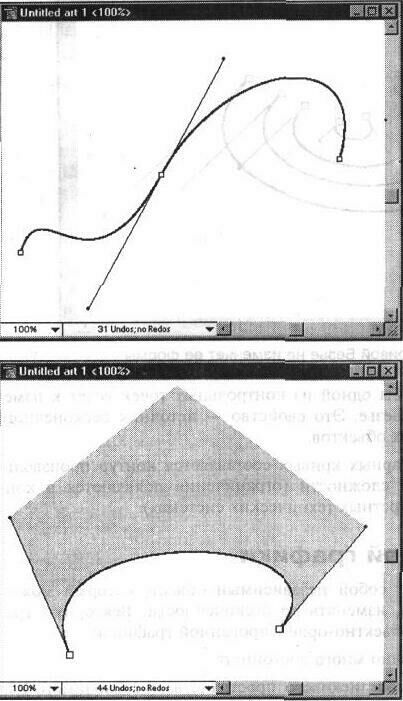 Сривая Безье симметрична, то есть она сохраняет свою форму, если изме-шть направление вектора кривой на противоположный («поменять местами» начальную и конечную опорные точки). Применение это свойство на-юдит при создании составных контуров. Смотрите об этом в главе 7.