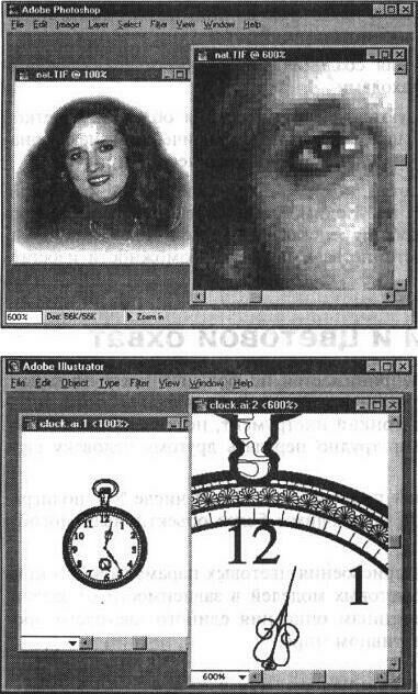Рис. 4-6. Векторное изображение и его фрагмент при большом увеличении