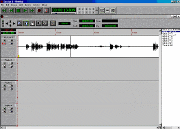 Edit Window – это встроенный звуковой редактор. Здесь записанный материал представляется в графической форме, редактор позволяет проводить линейный монтаж нескольких аудио треков (не более 8). Также Edit Window позволяет производить запись.