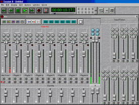 Для удобства пользователей, управляющие кнопки аналогичны кнопкам воспроизведения/записи на магнитофонах. Session 8 не сможет произвести запись, если ни один из каналов не открыт для записи. Для того чтобы разрешить запись в канале, необходимо предварительно сделать активной кнопку Record-Enable в том канале, в который должна быть произведена запись. Также невозможно производить запись, когда заполнен жесткий диск Session 8. В Edit Window отображается либо свободное место в мегабайтах, либо оставшееся время записи в зависимости от числа открытых для записи каналов. После предварительных настроек, для начала записи необходимо нажать кнопку Record и затем нажать кнопку Play (или клавишу Space на клавиатуре). Остановка записи осуществляется путем нажатия кнопки Stop.