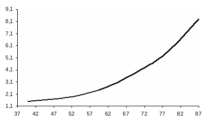 Рисунок 4 – Зависимость между расходом и концентрацией ксантогената.