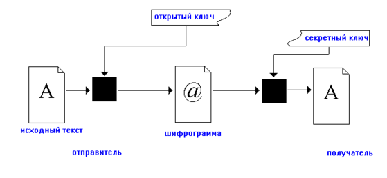 Шифры с открытым ключом подразумевают наличие двух ключей - открытого и закрытого; один используется для шифровки, другой для расшифровки сообщений. Открытый ключ публикуется - доводится до сведения всех желающих, секретный же ключ хранится у его владельца и является залогом секретности сообщений. Суть метода в том, что зашифрованное при помощи секретного ключа может быть расшифровано лишь при помощи открытого и наоборот. Ключи эти генерируются парами и имеют однозначное соответствие друг другу. Причём из одного ключа невозможно вычислить другой.