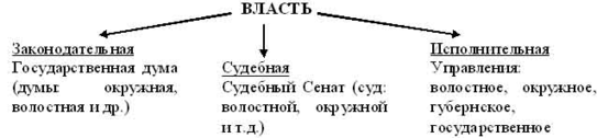Управления: волостное, окружное, губернское, государственное. Если все проекты Сперанского принять, то Россия превратилась бы в конституционную монархию со строгим разделением властей.