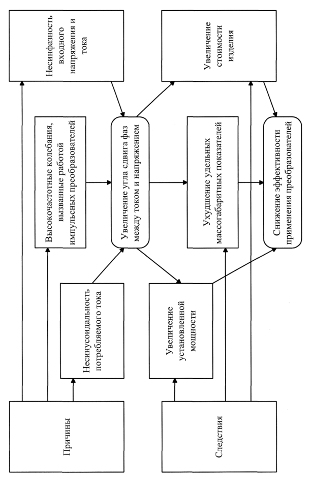 Проблемы электромагнитной совместимости устройств силовой электроники с техносферой связаны как с усилением обратного влияния полупроводниковых преобразователей на питающую сеть в связи с их непрерывно расширяющимся распространением, так и с ростом требований к качеству электроэнергии из-за роста числа ответственных потребителей, чувствительных к некачественности электрической энергии. [ 1, 2, 3, 4, 9 ]