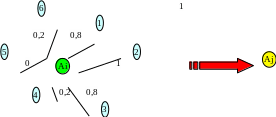 На рис. 2. показано распределение приоритетов смещения из узла Ai в узел Aj. Смежные Ai узлы для простоты пронумерованы.