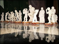 Его экспозиция состоит исключительно из комплектов шахмат. Но каких! Представьте себе шахматную доску, на которой разместилось тридцать два произведения искусства. Вот, например, шахматы "Страсти по Родену" - на черно-белых клетках целая галерея миниатюрных скульптур, со скрупулезной точностью повторяющих шедевры "великого из великих" Огюста Родена.