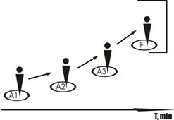 На основании этого анализа Вы выбираете тот путь, который отвечает Вашим внутренним устремлениям и имеющимся возможностям. На примере, изображённом на схеме, выбран путь через элементы F3 и F1 к состоянию F. Здесь есть отличие между совершением действий, исходя из того, что Вы можете в классическом подходе и совершением действий, исходя из того, что Вы желаете в подходе проектном.