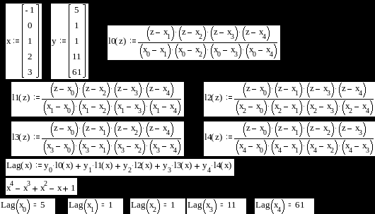 Многочлен Лагранжа, принимающий заданные значения в узловых точках имеет вид:
