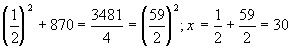 В одной из клинописных табличек встречается такая задача: “Я вычел из площади сторону моего квадрата, это 870” (нетрудно догадаться, что речь идет о квадратном уравнении x2-x=870).
