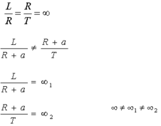Использование для описания вселенной формата заданного посредством прямой (луча) состоящей из бесконечного количества точек, приводит к невозможности сопоставления стремящихся к бесконечности величин, в силу чего качественно уступает использованию формата заданного посредством прямой (луча) состоящей из бесконечного количества отрезков, каждый из которых состоит из бесконечного количества точек.
