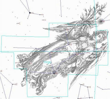 В верхней части созвездия Девы, в области неба, приближенно ограниченной звездами эпсилон, дельта, гамма, эта, бета, омикрон, сосредоточено огромное количество галактик. Здесь в мощные телескопы видна "система из систем" - грандиозное облако галактик, включающее в себя около двух с половиной тысяч "звездных островов", подобных нашему. Центр облака удален от нас на 12 миллионов парсеков, а само облако в целом уносится от нас, подчиняясь знаменитому закону "красного смещения", со скоростью 1200 км/с, то есть в тысячу раз быстрее пули!
