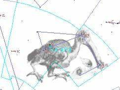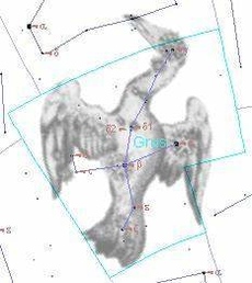 Может быть, потому, что журавли обычно летят косяком, так названо одно из очень красивых созвездий южного полушария - оно напоминает стаю летящих журавлей. А еще больше оно похоже на единицу. Очертания этого созвездия четки и выразительны. Они образуют острый угол с весьма неравными сторонами. Вершина угла отмечена звездой бета (второй величины), а в конце "хвостика" "единицы" блестит чуть превосходящая ее по яркости а. Всего в созвездии до 30 звезд.