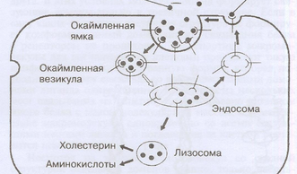 Фагоцитированные макрофагами модифицированные ЛПНП и ЛППП воспринимаются ими как чужые молекулы белка и попадают в лизосомы. В лизосомах кислые протеазы осуществляют протеолиз апо- В 100, но гидролизовать поли -ЭХ на свободную ЖК и свободный ХС ни моноциты ни макрофаги не могут.