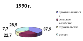 По данным таблицы мы видим, что структура ВВП значительно изменилась: доля промышленности уменьшилась на 10%, сельского хозяйства – уменьшилась в 3 раза, а вот доля услуг увеличилась в 1,5 раза, что говорит о переориентации нашей экономики на социально-экономическое развитие. Удельный вес строительства менялся незначительно в течение рассматриваемого периода и остался практически без изменений.
