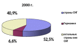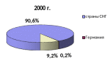 Из рисунка видно, что значительная доля иммигрантов приходится на страны СНГ, правда по сравнению с 2000 г. она уменьшилась на 2,9%. Удельный вес остальных стран соответственно увеличился на 2,9%. Что касается Германии, то ее доля в иммиграции населения очень мала, но все же увеличилась на 0,3%.