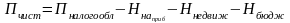 Рассчитываем чистую прибыль. Она определяется как разница между налогооблагаемой прибылью и начисленного налога на прибыль. В свою очередь налогооблагаемая прибыль – это разница между балансовой прибылью и налога на недвижимость минус прибыль, которая не облагается налогом.