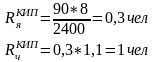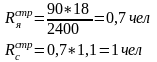 Рассчитаем численность работающих (явочной (Rя) списочной (Rс)):