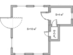 Магазин будет состоять из трёх помещений: торгового зала (площадью 10 м2), складского помещения (площадью 4 м2) и туалета (площадью 2 м2) (см. рис.1).