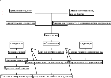 | Организация деятельности | - определение центров ответственности за результаты деятельности; - анализ соответствия кадрового состава; - анализ системы оплаты труда | 1. Обоснование обязанностей структурных подразделений и отдельных исполнителей. 2. Переподготовка (повышение квалификации): - подготовка новых кадров. 3. Оценка существующей системы оплаты труда. |