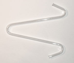 Электролизер для получения неактивированных растворов (рис.1) состоит из двух идентичных камер 1, 2. Электроды изготовлены из графитового волокна 2, 3 фиксируются пружинами из нержавеющей стали. Гидрозатвор (рис.2) изготовлен из стеклянной трубки диаметром 10мм. Его форма препятствует перемешиванию и нейтрализации высокоактивных неустойчивых соединений, которые образуются в процессе электрохимического синтеза вблизи анода и катода.