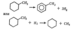Циклоалканы превращаются в ароматические соединения, подвергаются изомеризации, гидрированию, например