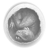 ля того чтобы определить, какое из яиц динозавров содержит эмбрион, специалисты высверливают в нем крошечные дырочки и изучают клеточную структуру. Если зародыш обнаружен, окаменевшее содержимое яйца извлекается и помещается в раствор уксусной кислоты, с помощью которой постепенно удается получить доступ к самим косточкам. Затем эти косточки пропитывают специальным пластиком и далее начинают реконструировать зародыш. Все эти операции очень трудоемки, и иногда занимают более года. Еще одно интересное наблюдение исследователей яиц динозавров состоит в том, что маленькие яйца могли откладывать крупные динозавры и наоборот. Например, длина верхней конечности ящера хадрозавра составляла 4 фута (около 1,5 м), а измеренная длина аналогичных костей эмбриона этого животного оказалась равной 3 дюймам (7,5 см). Проведение химического анализа содержимого ископаемых яиц позволяет получить дополнительные сведения об отложивших их животных. Так, анализ фосфатов из эмбриональных костей, выполненный группой ученых из Северной Каролины, позволил установить возраст яиц. Он оказался равным 75 млн лет. Будущие исследования яиц динозавров, возможно, дадут много нового материала, касающегося размножения, питания и ряда других особенностей жизни этих удивительных животных, исчезнувших с лица нашей планеты навсегда.