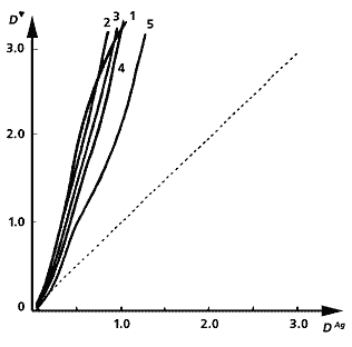 Чтобы получить такие снимки, сначала исходное серебряное изображение выдерживают в растворе, содержащем “смешанный” (на языке современной координационной химии - гетеролигандный) комплекс трехвалентного железа с лимонной и винной кислотами и все тот же ион [Fe(CN)6]3-, в результате чего образуется металлгексацианоферрат - промежуточное несеребряное изображение синего цвета. За счет последующего взаимодействия этого МГФ с 8-гидроксихинолином синтезируется металлохелатное соединение - носитель окончательного серовато-черного изображения. Цветом оно похоже на первоначальное серебряное, но оптические плотности D' его в целом выше. В ходе процесса образуется преимущественно лишь одно соединение - бис(оксинато)железо(II), поэтому не удивительно, что оптические плотности D' монотонно нарастают по мере увеличения DAg. Если для синтеза металлохелата использовать 8-меркаптохинолин, промежуточного изображения не будет, так как двухвалентное железо в координационном соединении под воздействием атмосферного кислорода сразу же окисляется в трехвалентное. Полученная в итоге фотография имеет различные оттенки красно-коричневого цвета.