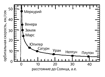 Действительно, для нашей Солнечной системы с большой точностью установлено, что зависимость орбитальных скоростей планет v от расстояния до Солнца r находится в полном соответствии с законом Кеплера (рис. 2).