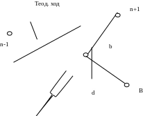 нем на съемочный пикет с точки съемочного обоснования измеряют горизонтальный угол, затем рулеткой измеряют расстояние d.