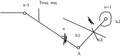 -дирекционные углы последующей и предыдущей сторон хода. Если