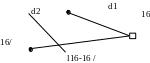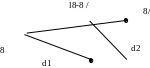При построении точки на плане циркулем проводят две дуги, радиусом d1 и d2. На пересечении этих дуг будет находиться съемочный пикет.
