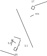 d1 = 17,1 м; d2 =1,1 м вправо (дорога)
