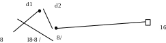 d1=17,7 м; d2=13,1 м; l1=29,9 м (тропинка) вправо