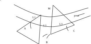 В случае, когда невозможно измерить расстояние между точками непосредственно, его можно определить косвенным способом (рис.)
